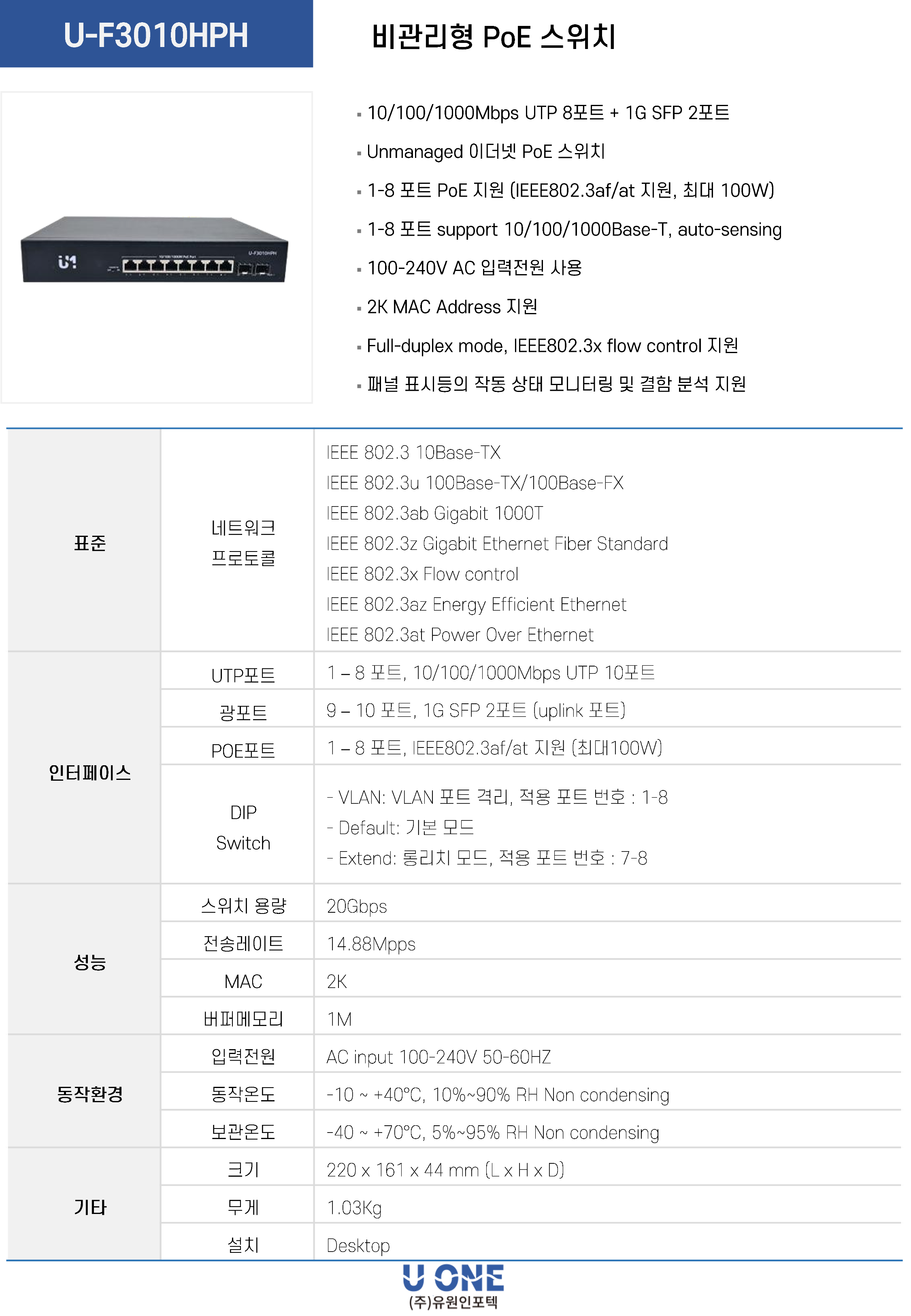 8 * 10/100/1000Base-T PoE ports (Power/Data)