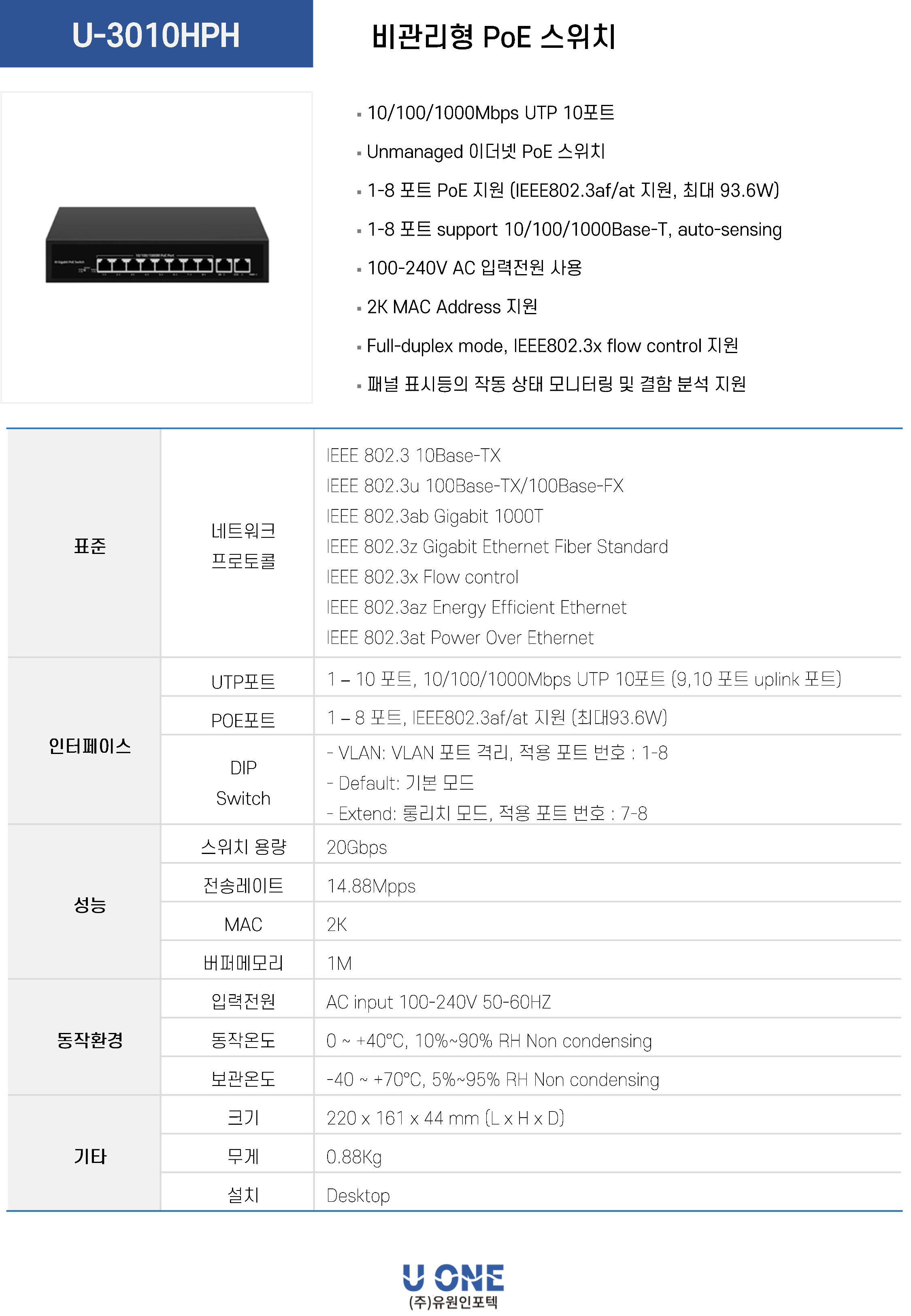 8 * 10/100/1000Base-T PoE ports (Power/Data)