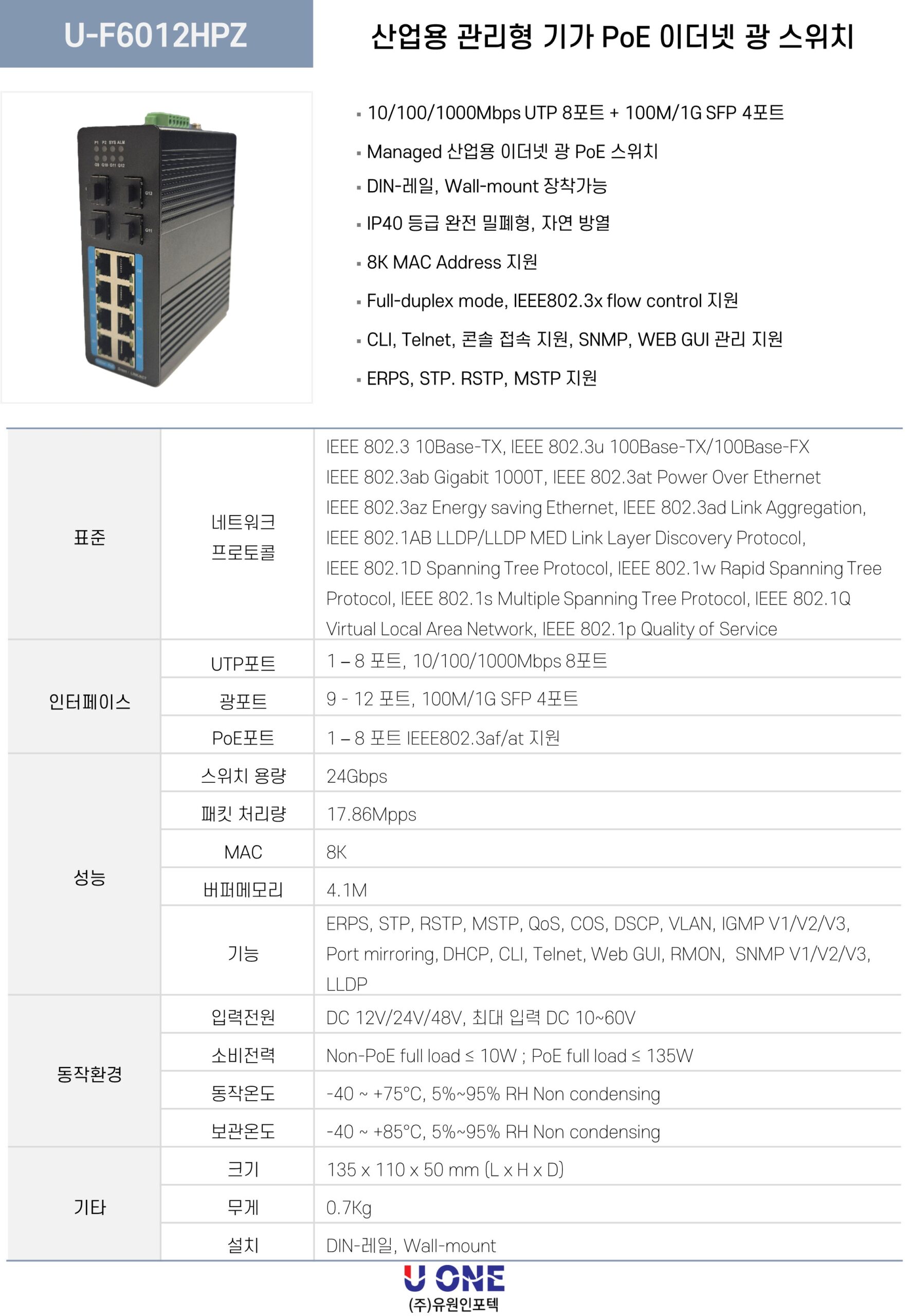 광 포트 9-12포트 : 1G 지원