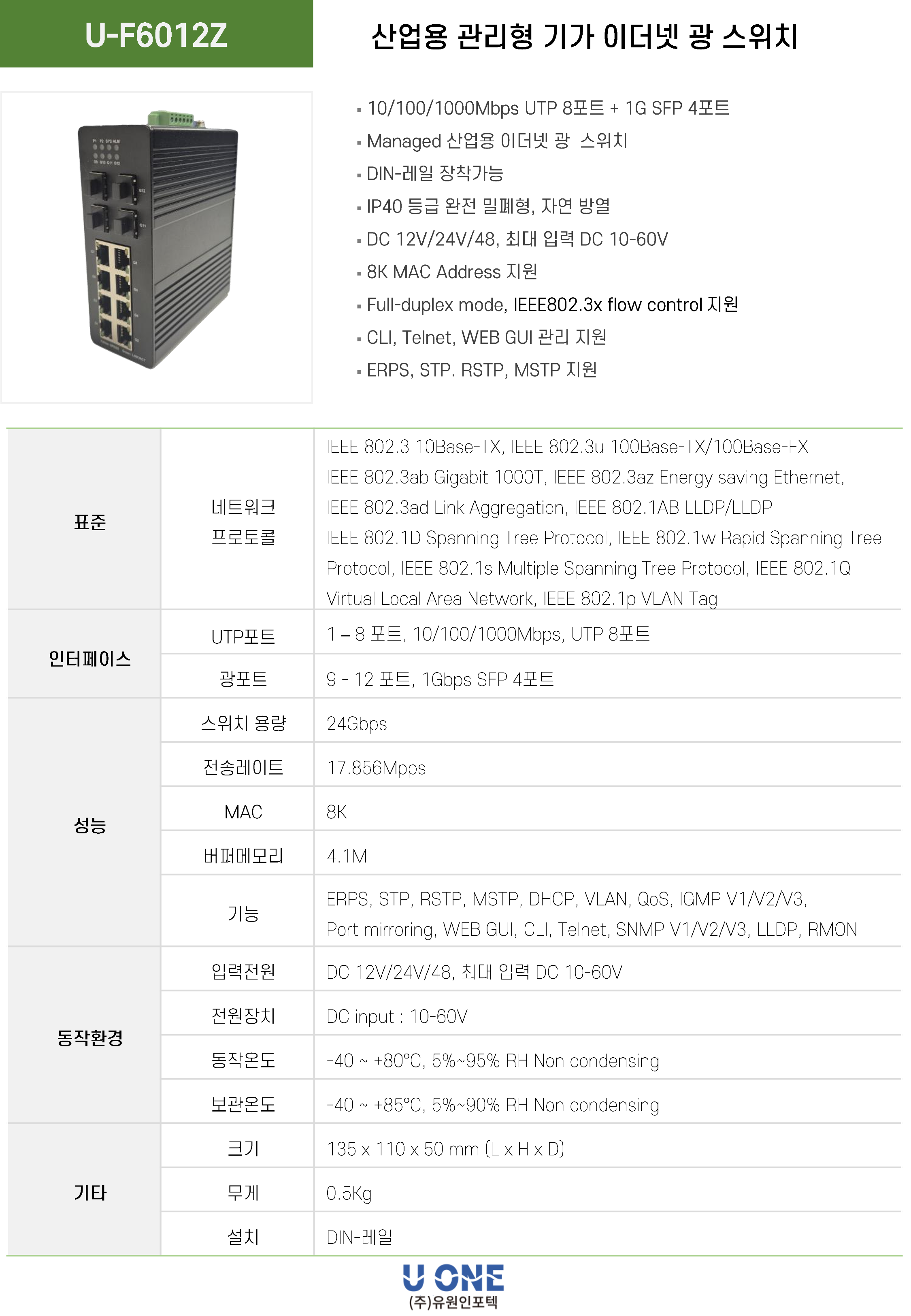 광 포트 9-12포트 : 1G 지원