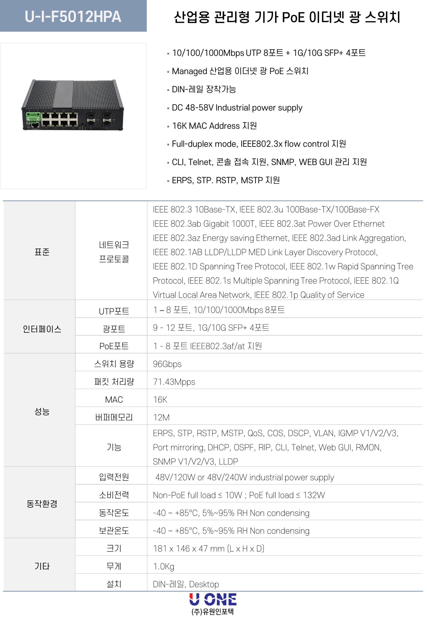 광 포트 9-12포트 : 1G / 10G 지원