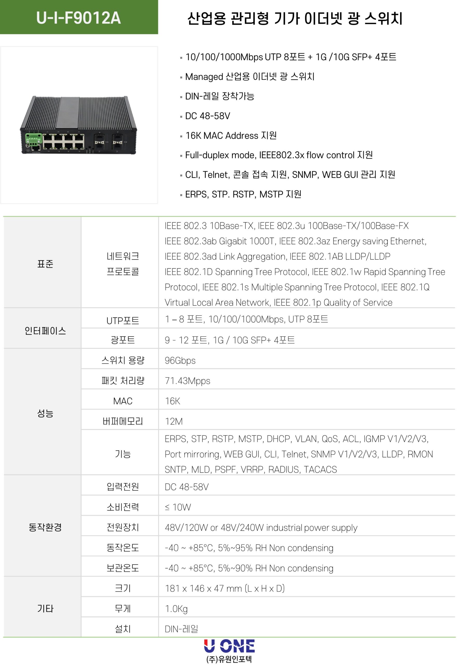 광 포트 9-12포트 :  1G / 10G 지원