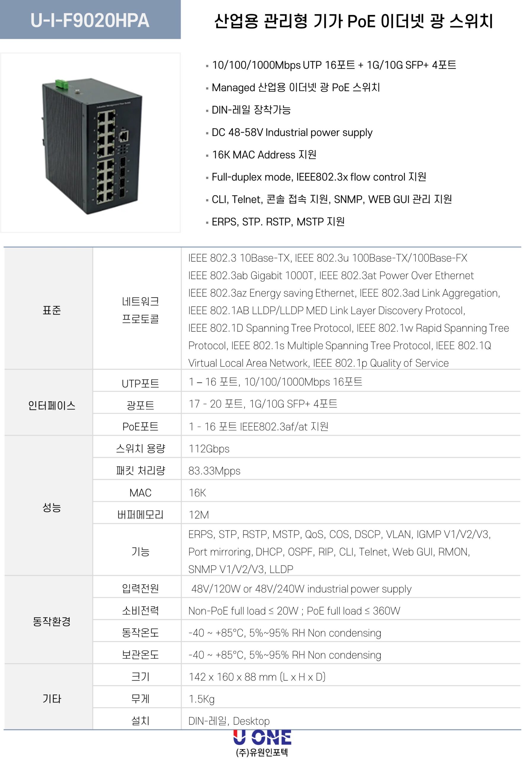산업용 관리형 기가 POE 이더넷 광 스위치