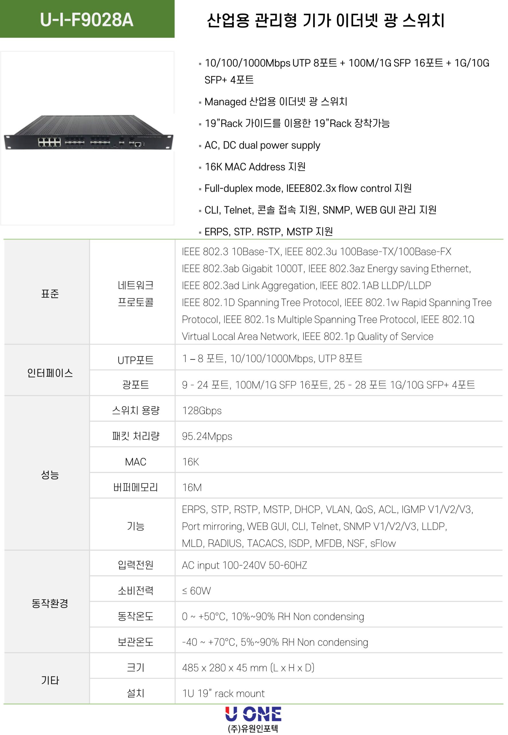 광 포트 9-24포트 : 1G 지원
